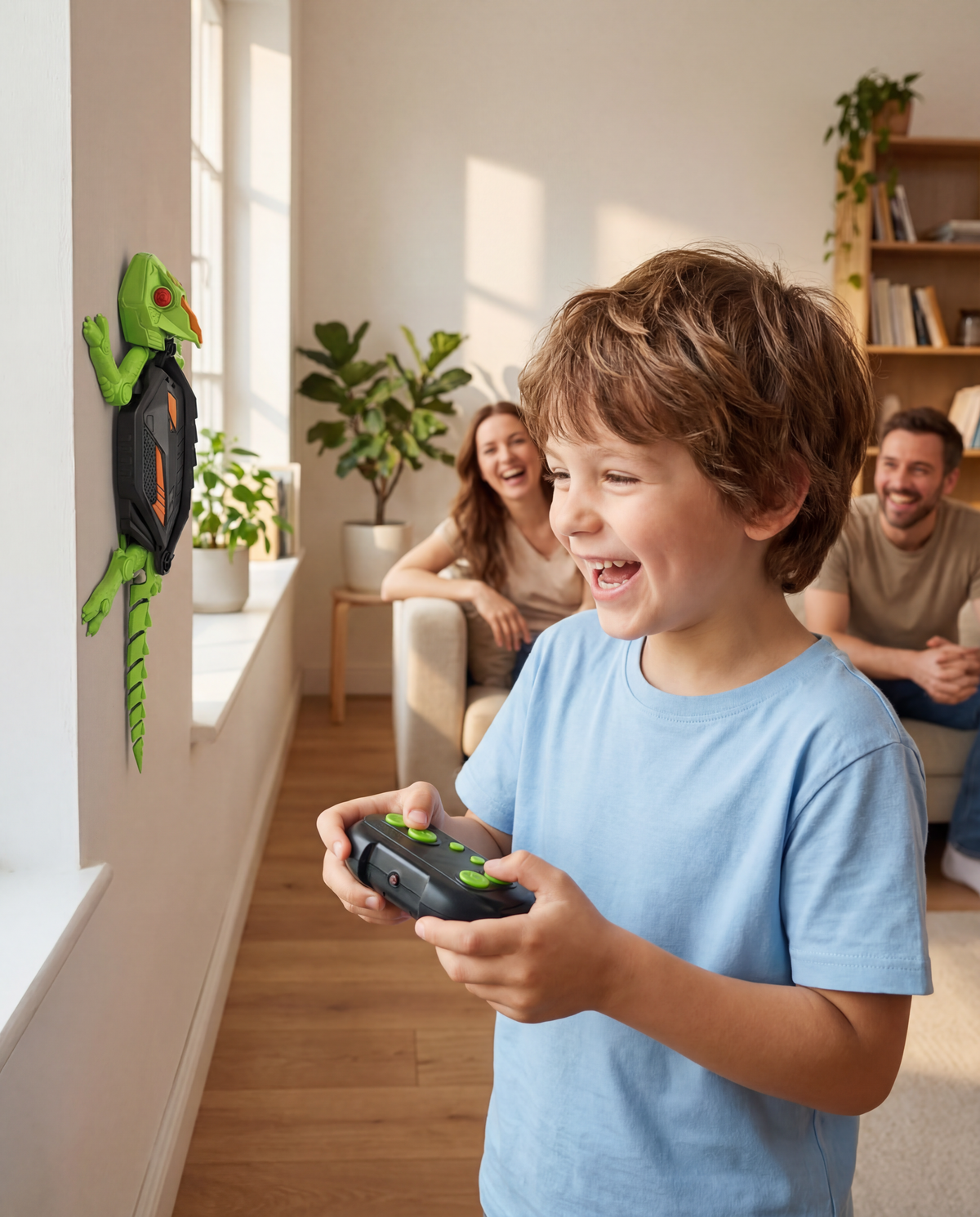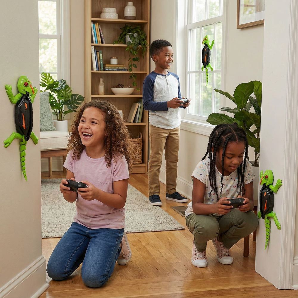 They grab it, aim it at a flat surface, and boom — it scurries straight upward like a real gecko.